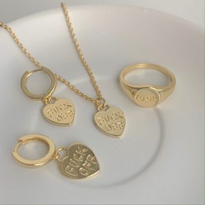Wear your heart on your sleeve and your mood on your ears. The F* Off earrings lets people know exactly how you’re feeling. Finish the look with the F* off necklace and ring for the perfect set!